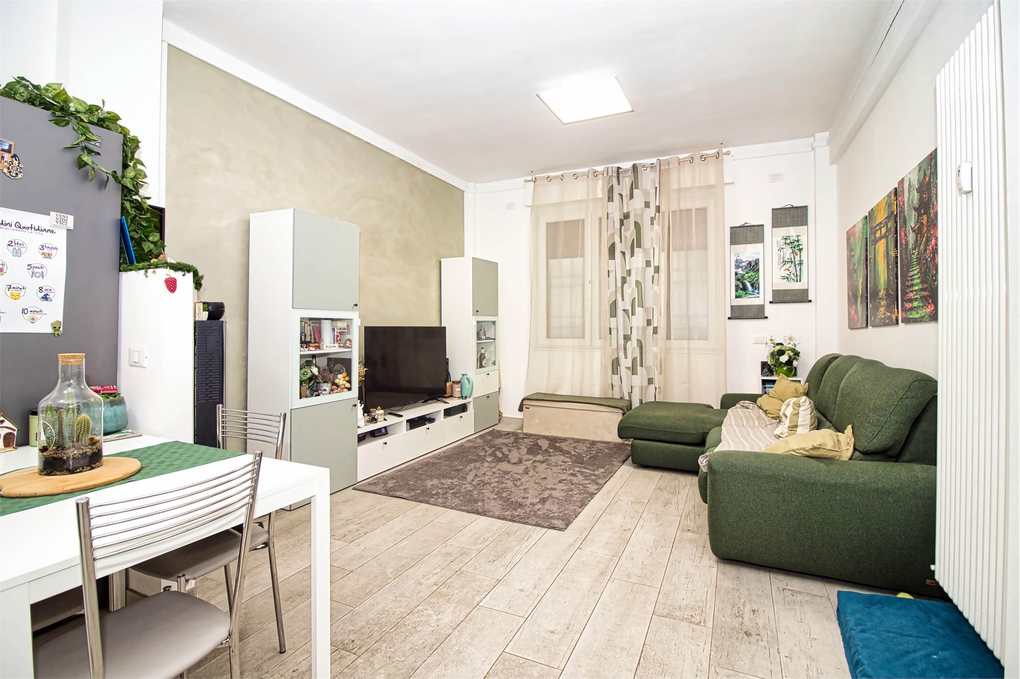 ZONA VIALI: appartamento composto da ampio soggiorno con cucina a vista (separabile), disimpegno con angolo ripostiglio/lavanderia, bagno e camera matrimoniale. Completa la proprietà una cantina.