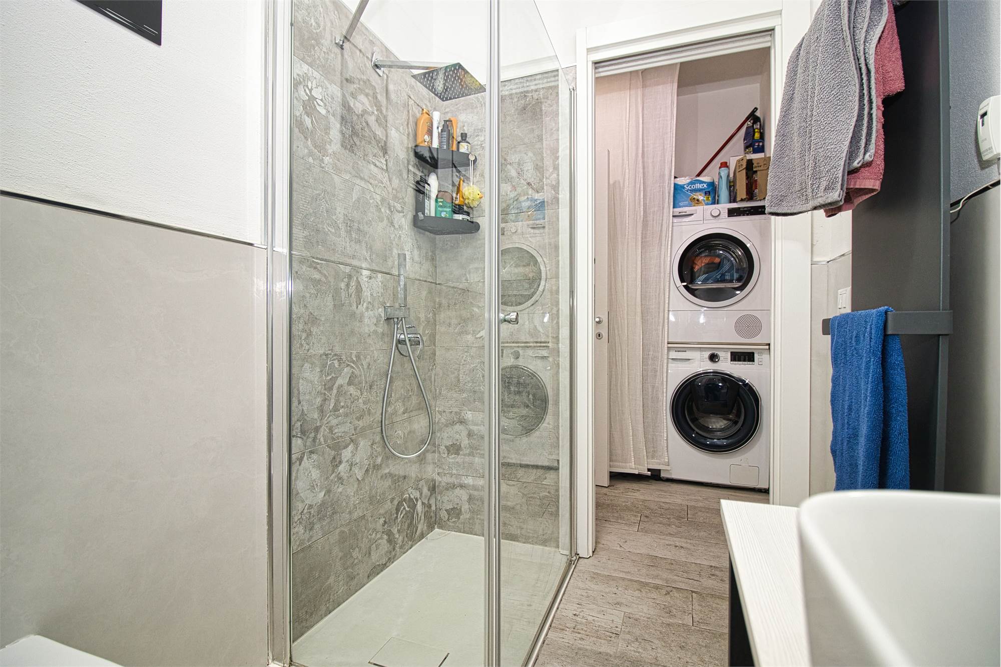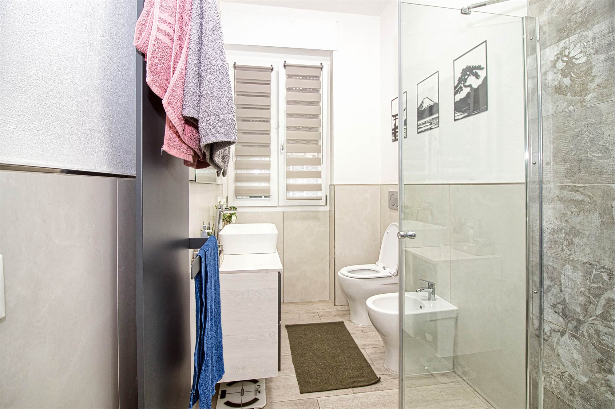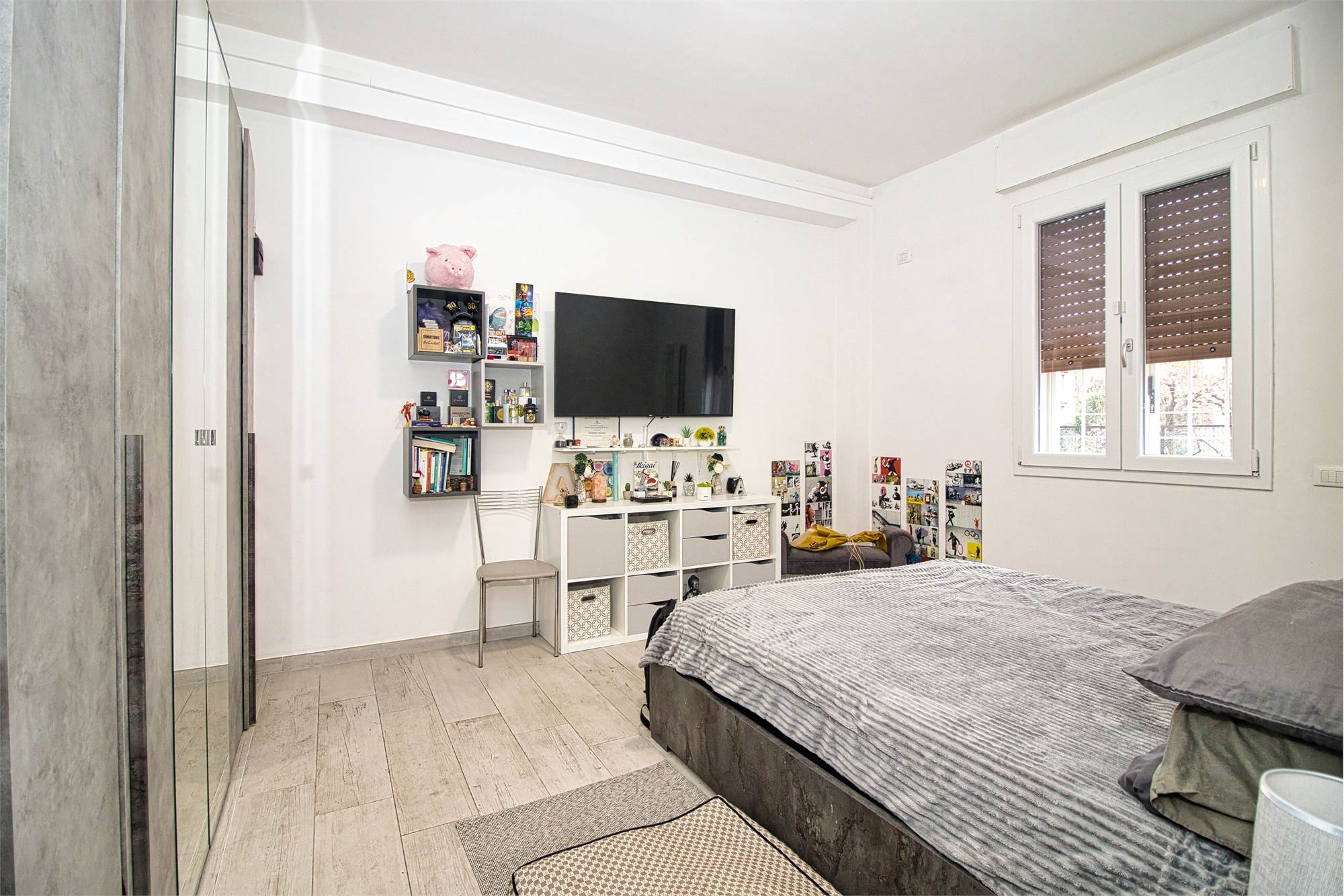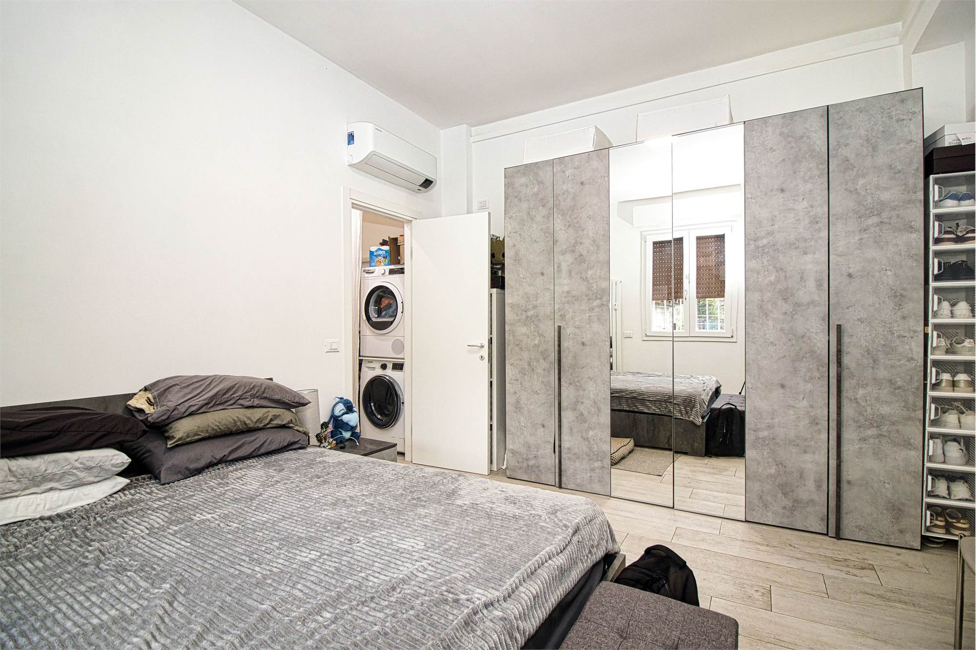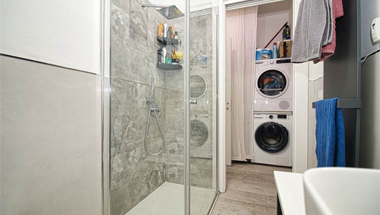 L'appartamento si trova al piano rialzato in un condominio signorile servito da ascensore. Nel 2023 sono stati fatti lavori di ristrutturazione con installazione di cappotto interno, aria condizionata e impianto domotico che consente accensione luci, comando tapparelle ed elettrodomestici a distanza.