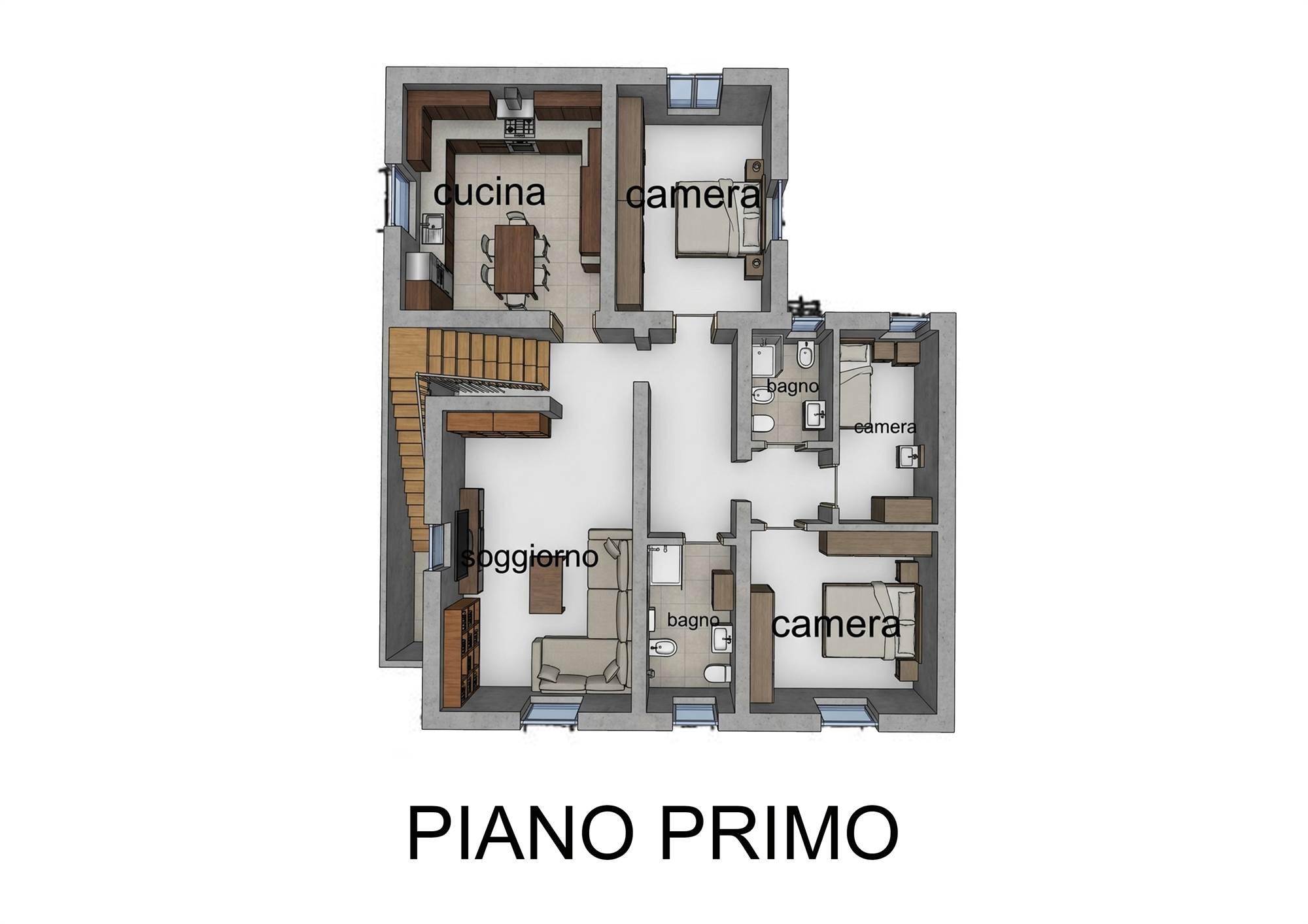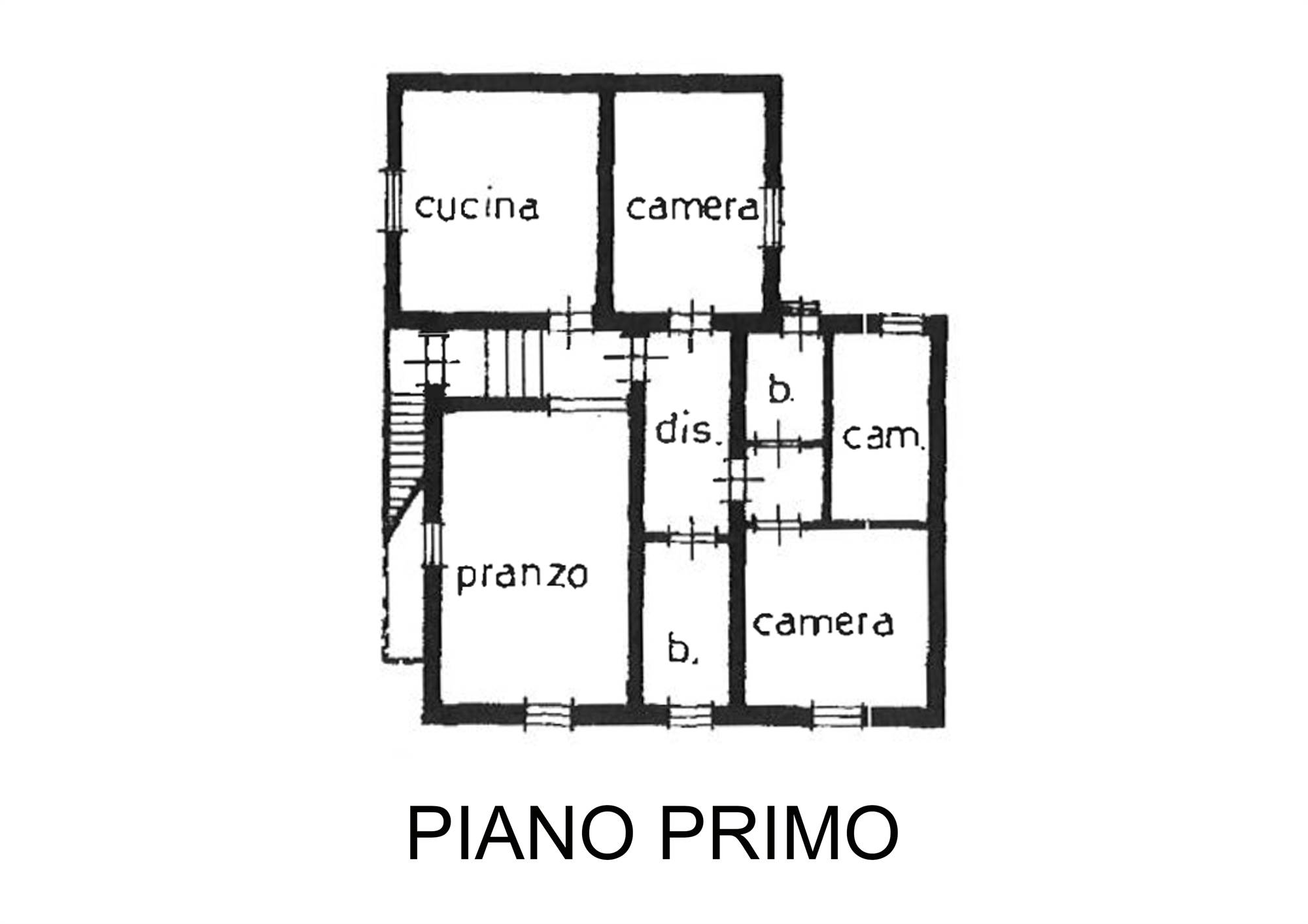 APPARTAMENTO AL PIANO PRIMO: ingresso su soggiorno, cucina abitabile, disimpegno notte, 3 camere e doppi servizi.